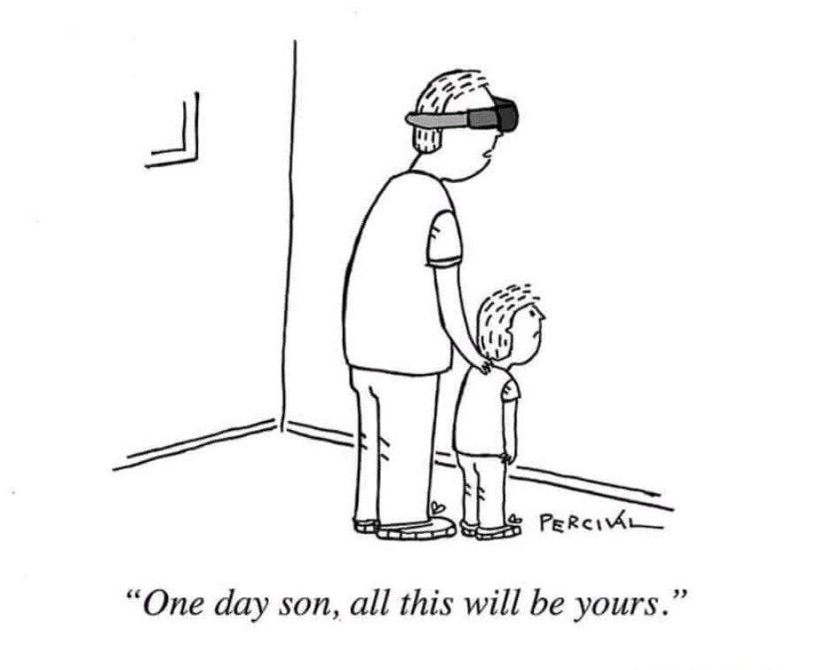 I’d argue VR is a stop-gap solution1. It’s burdened by the same interface constructs as your laptop while isolating and limiting collaboration outside the virtual space. Even more so than staring at a screen together. It creates a thicker barrier to explore the real world than a smartphone does. Literally limiting your field of view and natural ability to perceive nature’s color, shadows, subtle movement, and distant sounds. It may work great as a TV or game console, not so much for exploring and understanding the world we live in. VR also removes understated cues from our innate apparatus to collaborate, like eye contact, body language, subtle sounds, and group dynamics. This suppresses our collective ability to reason, understand the world, and persuade each other. You simply can’t sense presence or aura of other people when plugged into VR. When the world is mediated through a simulation, everything gets compressed as a simulacrum of the real thing. Entering a simulated world cultivates a very different social fabric; one with expectations of constant entertainment and saturated single-player aesthetics. But actual progress happens in the real world. We run experiments, test hypotheses, talk to people, build prototypes, and measure reality by venturing out of our software worlds and into the real.